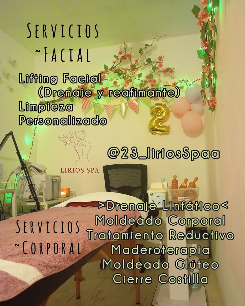Lirios Spa Hermosillo offers a range of day spa services including Relaxation Massage, Deep Tissue Massage, Aromatherapy, Facial Treatment, Body Scrub & Wrap, Manicure & Pedicure, and more.